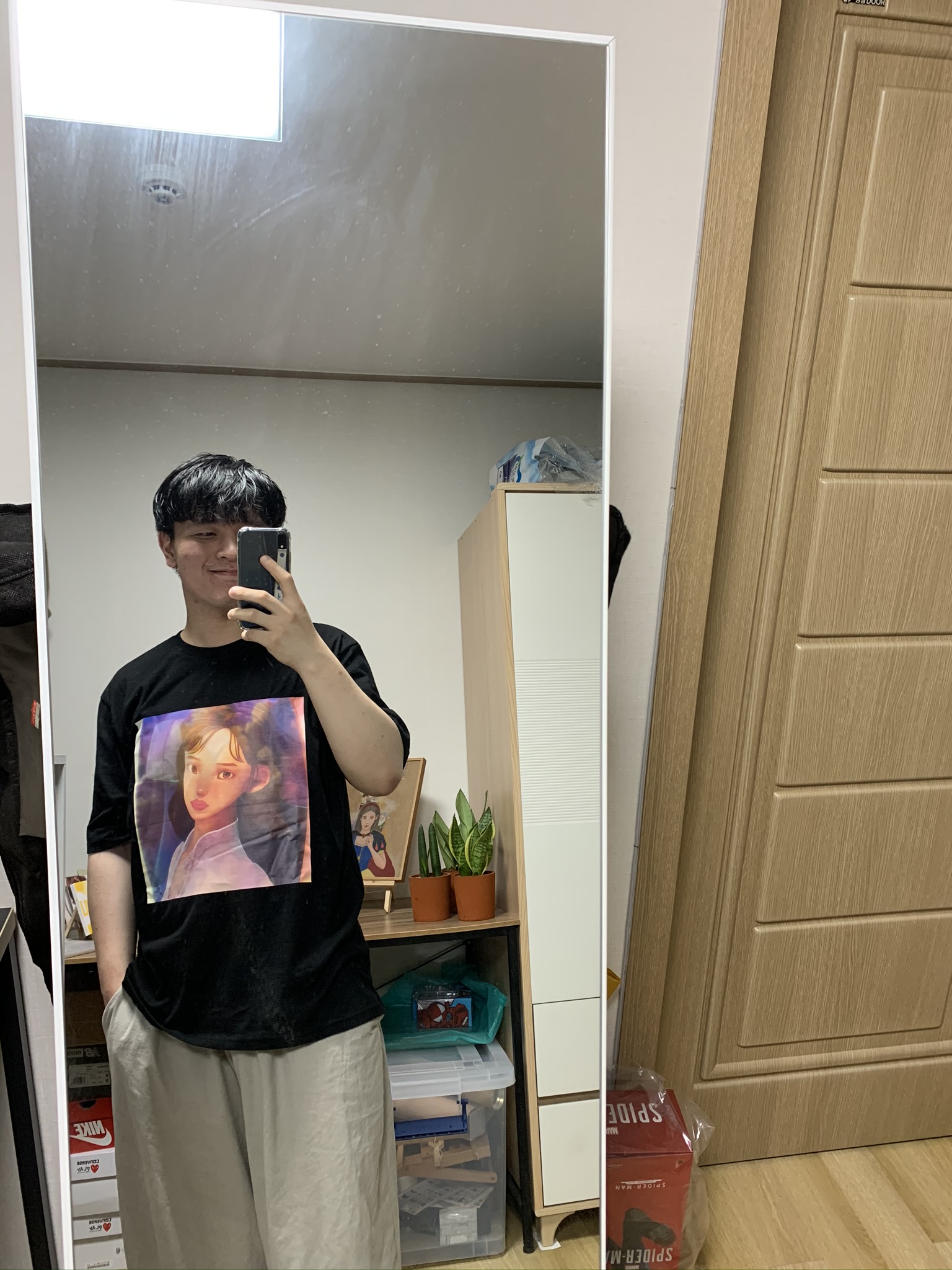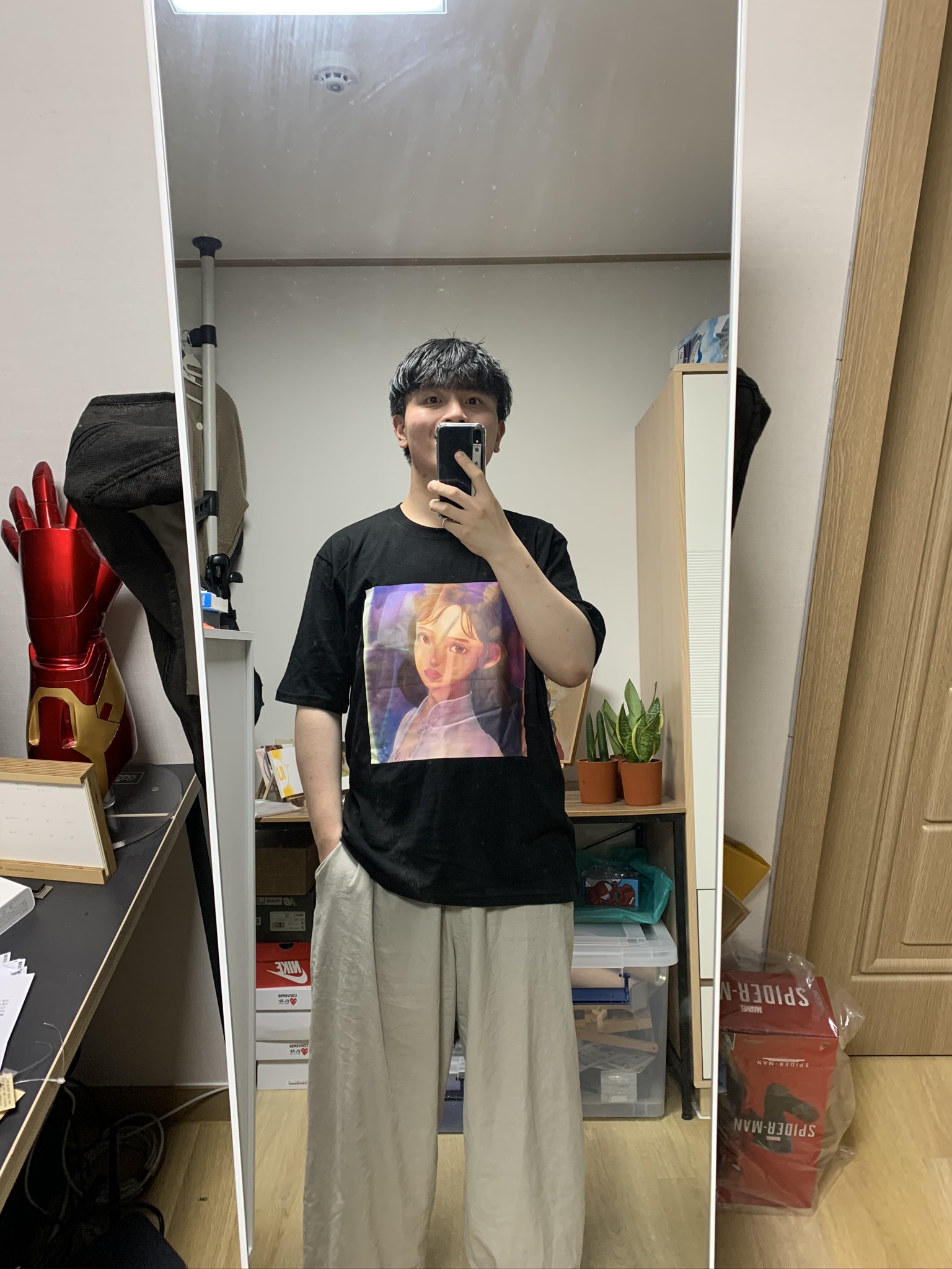 아이유님이 티셔츠를 입고 찍어주신 사진들을 보고 사이즈가 작지 않나 심히 걱정은 했지만 생각보다 루즈해서 다행이었습니다.